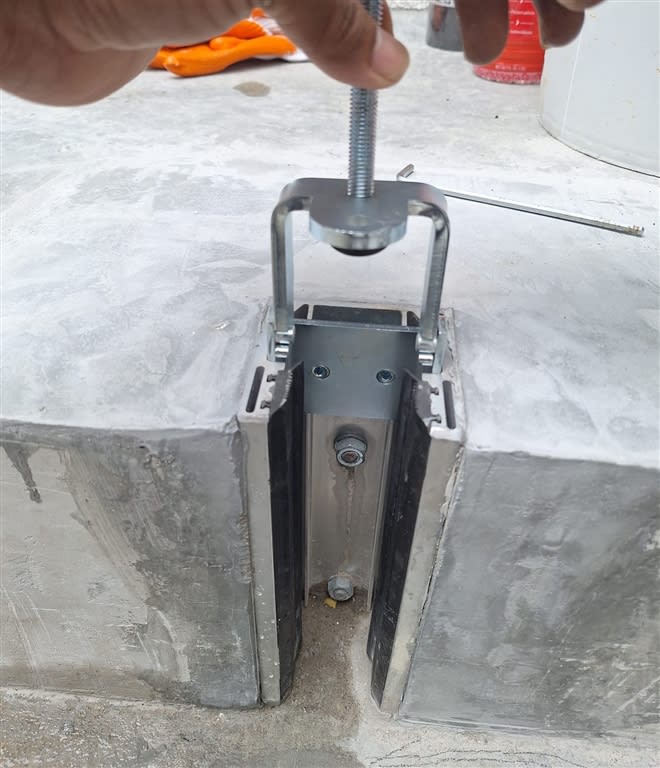 An Open Groove configuration was installed, featuring Water Protection Height of 250mm but with Columns and Beams of 300mm. To achieve a tight seal by pressing the Beams well against Lateral Guidances and onto the ground also, special pressure tools that are purpose-built for such unique scenarios were used.